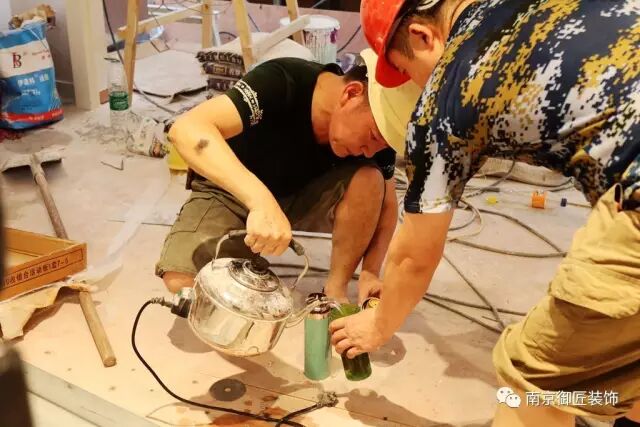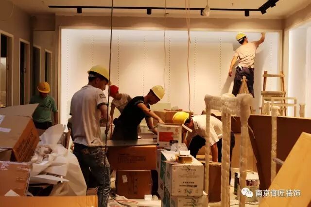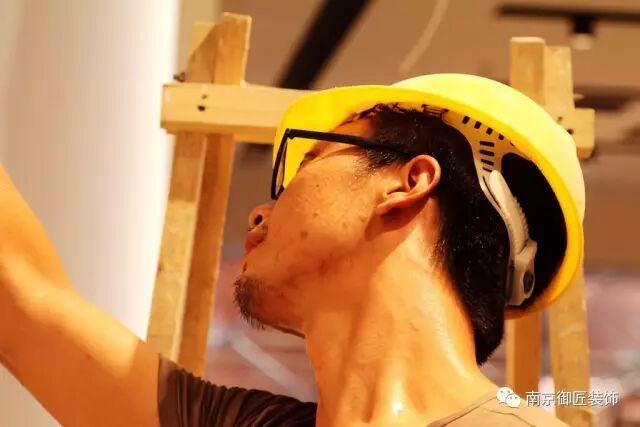 看到没?施工现场可没有空调,即使再热,也要加紧施工,客户等着开业呢!早完工一天,客户就多一天收益。御匠人必须将客户的利益放在首位,这就要求我们御匠人必须比平时付出更多的辛劳和汗水!